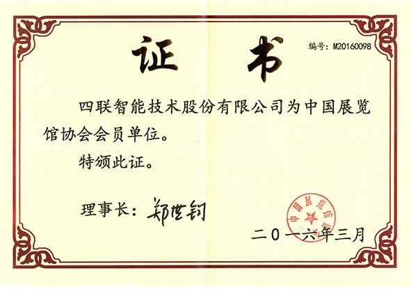 四联智能成功入选“中国展览馆协会”会员单位