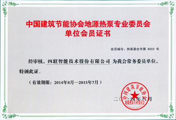 2014年8月,我公司荣获“中国建筑节能协会地源热泵委员会常务委员单位称号”和“中国节能协会节能服务产业委员会常务委员单位称号”。